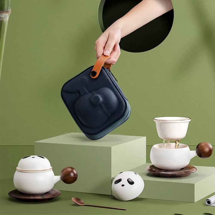 Gift for panda lovers | ceramic mug with wood handle and saucer