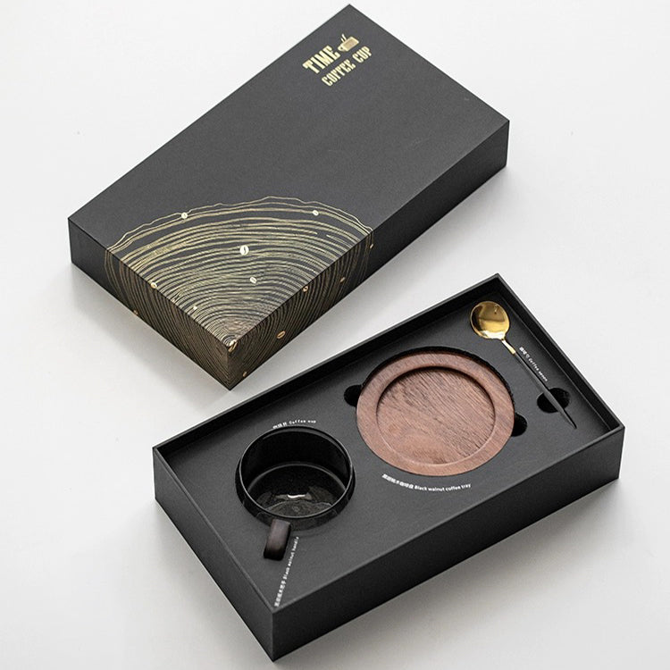 Wedding gift for couple, coffee mug with wooden saucer, spoon, minimalist gift