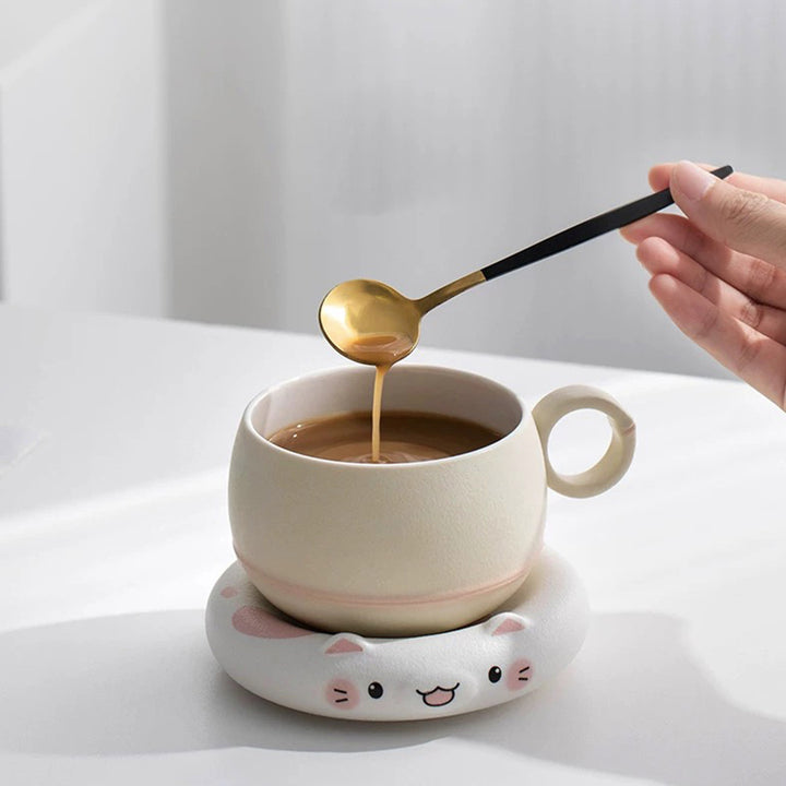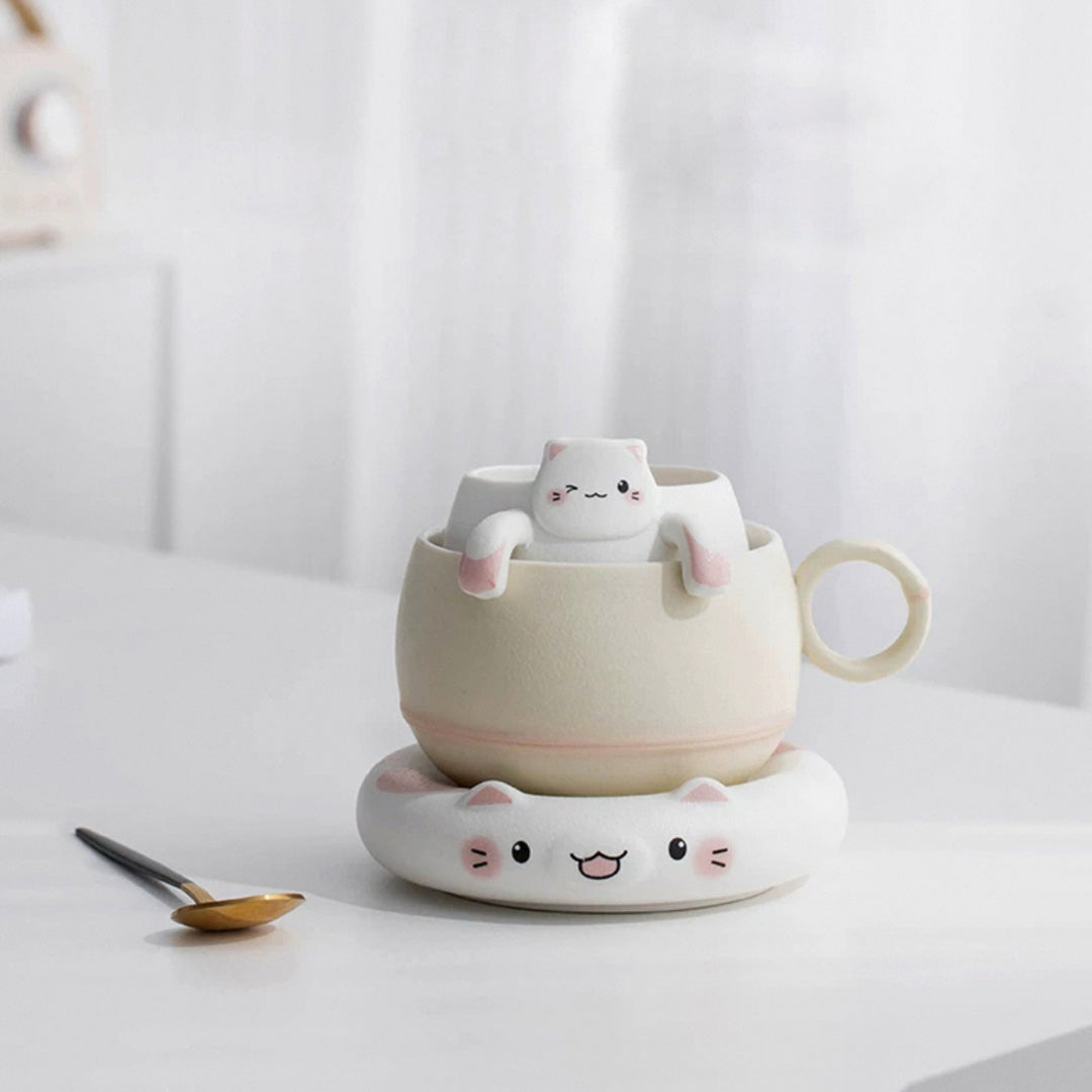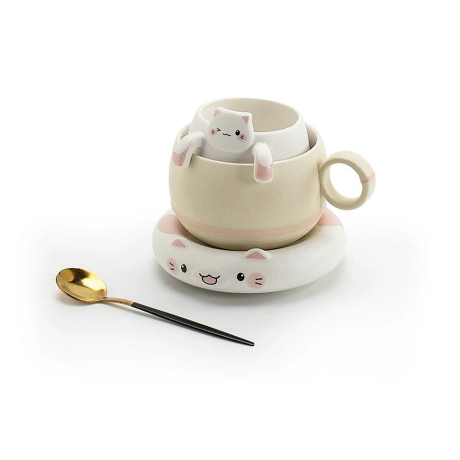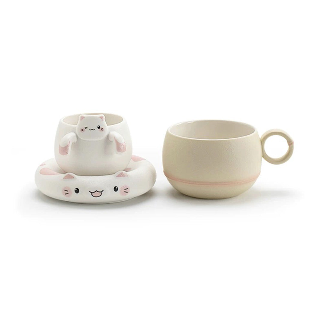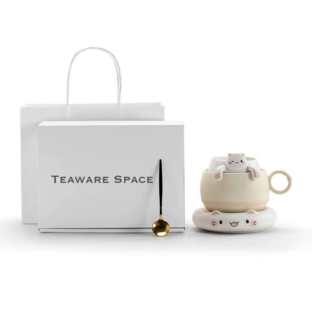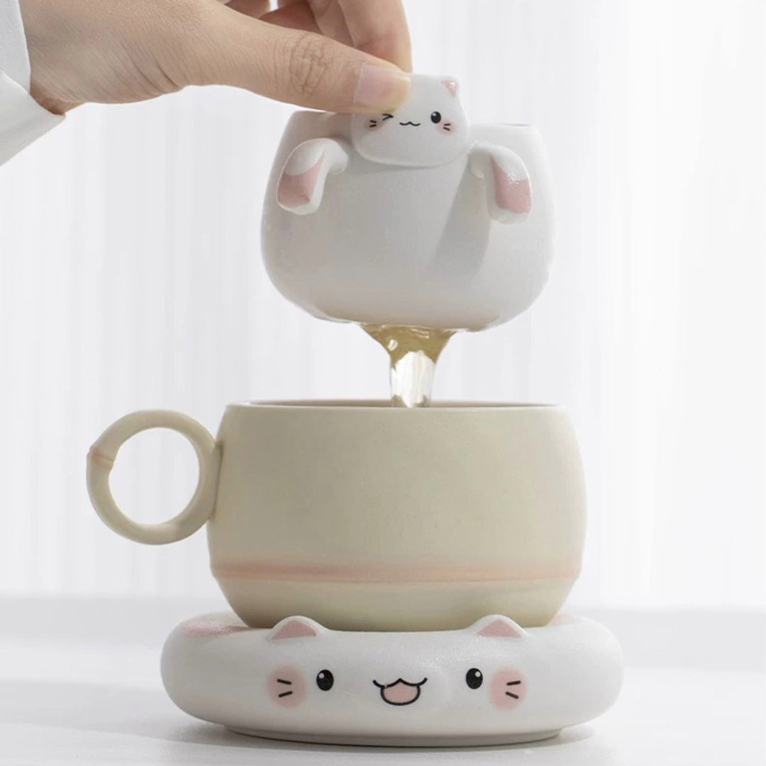 Unique cat mug with infuser and saucer | Cat lover gift
