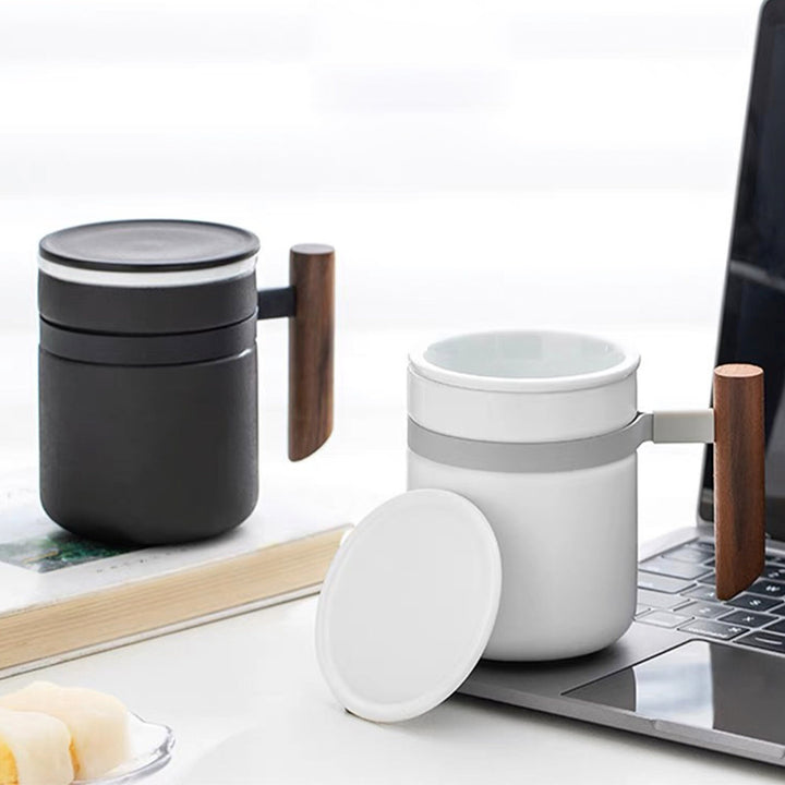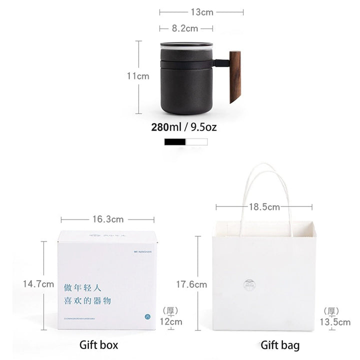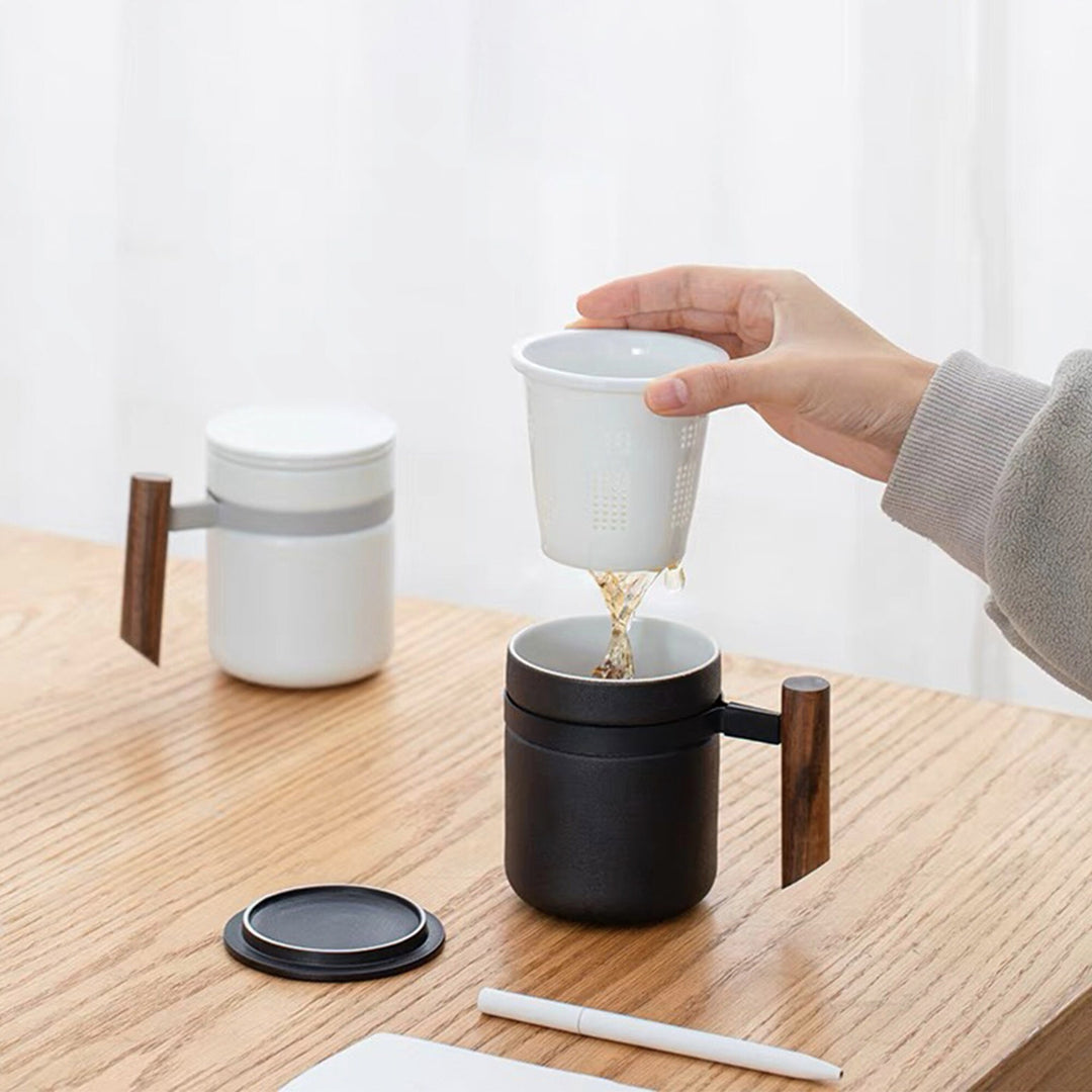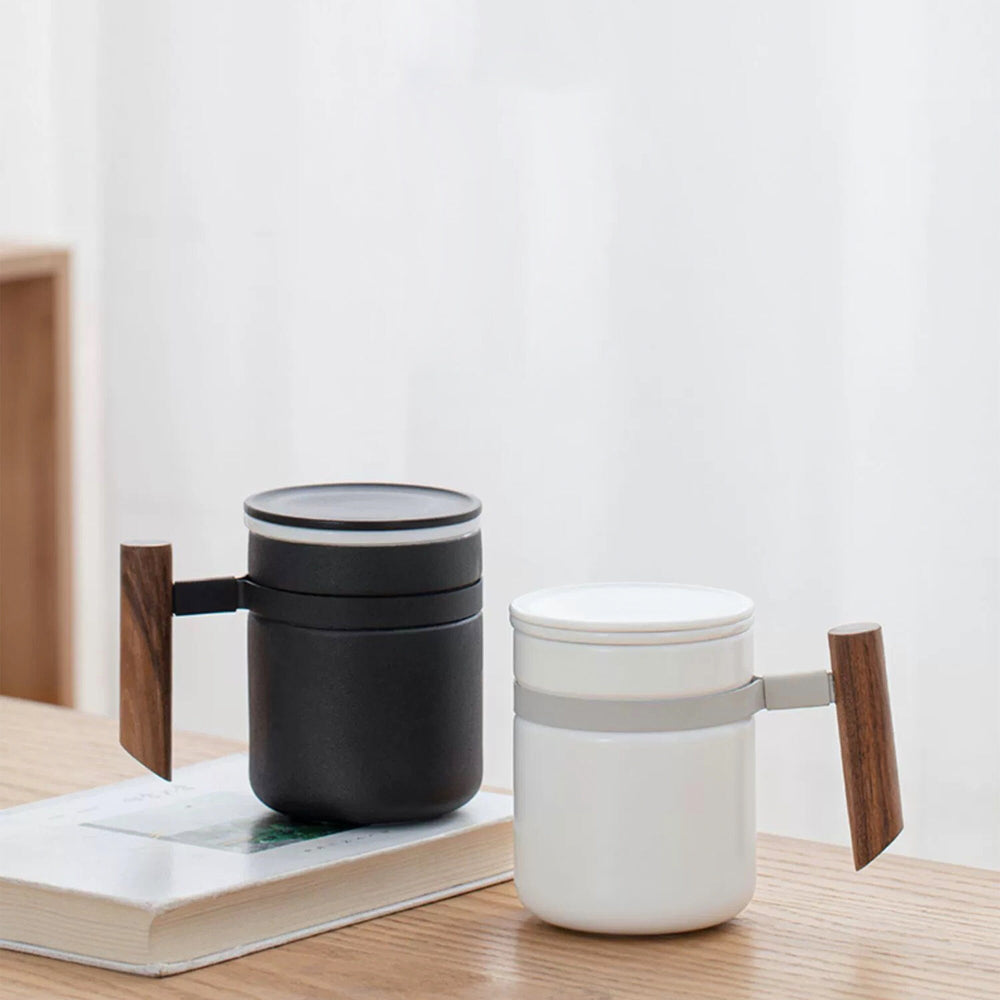 Minimal tea/coffee cup with infuser | Custom name /logo mug with wooden handle | Best friend gift idea