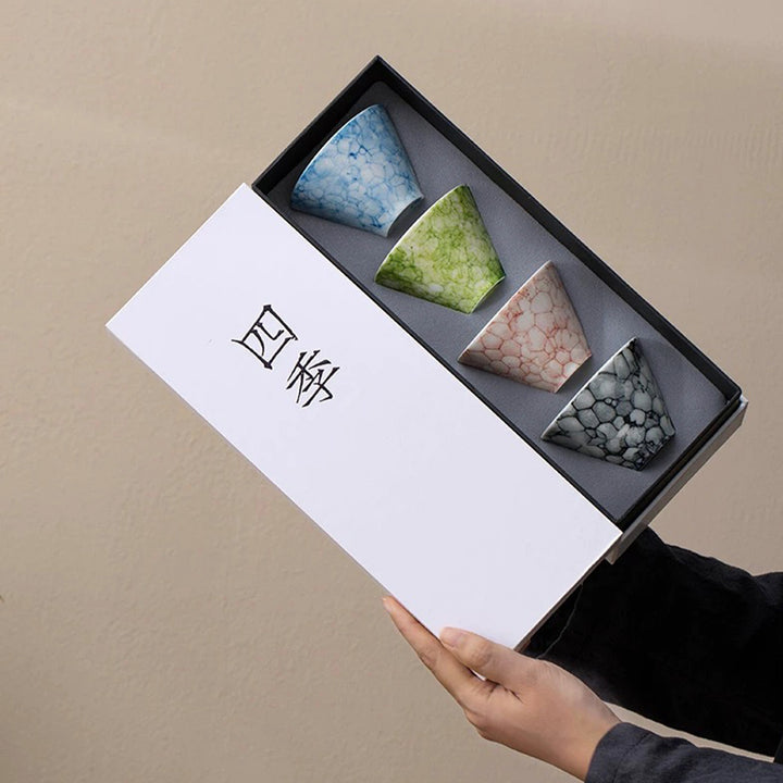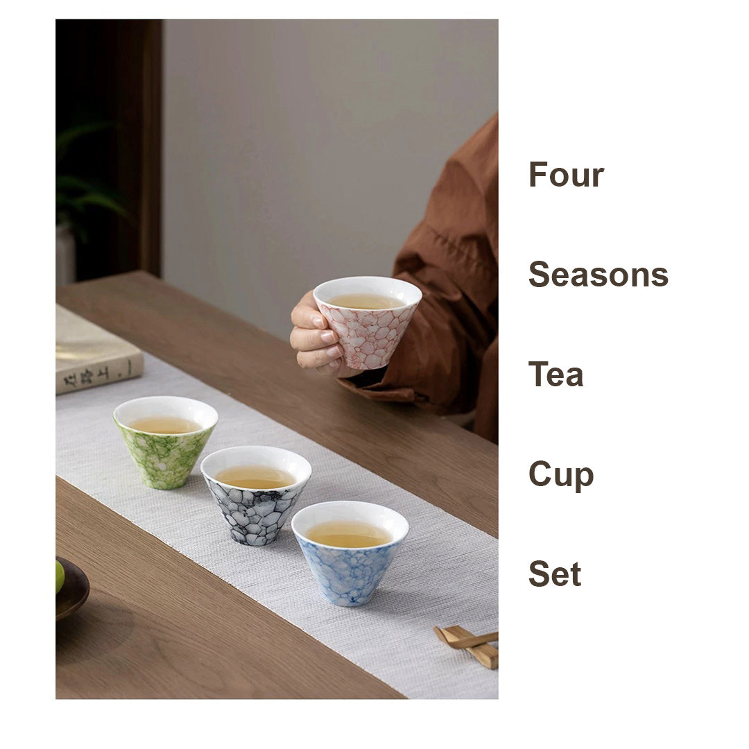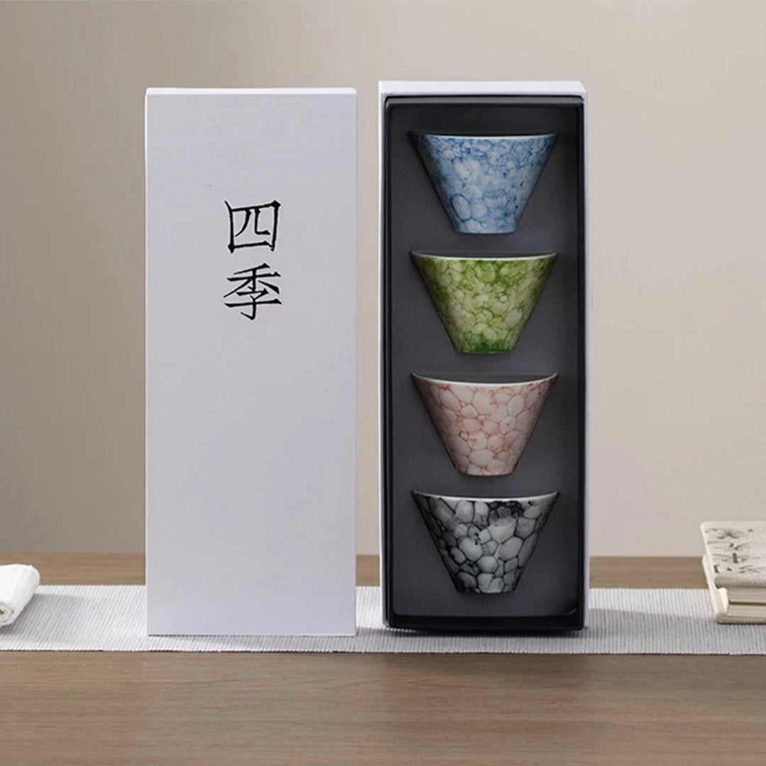 Each cup in this set represents a season, capturing the essence of nature's quiet transformations: