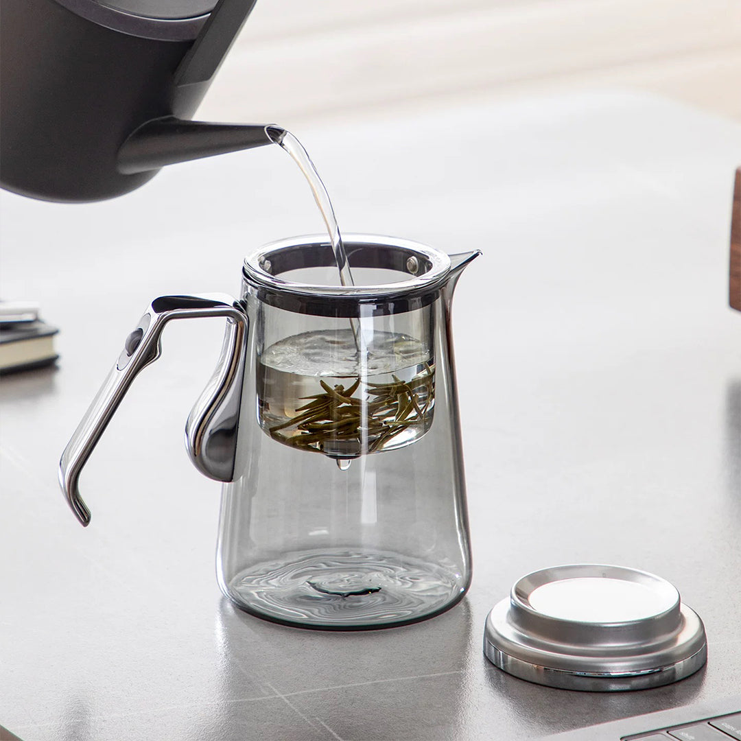 Brew with balance and ease using the Harmony Semi-Automatic Glass Teapot. Designed for modern tea lovers, this teapot combines elegant transparency with intuitive functionality. The semi-automatic mechanism allows for smooth, controlled pouring, while the heat-resistant glass showcases the beauty of each infusion.