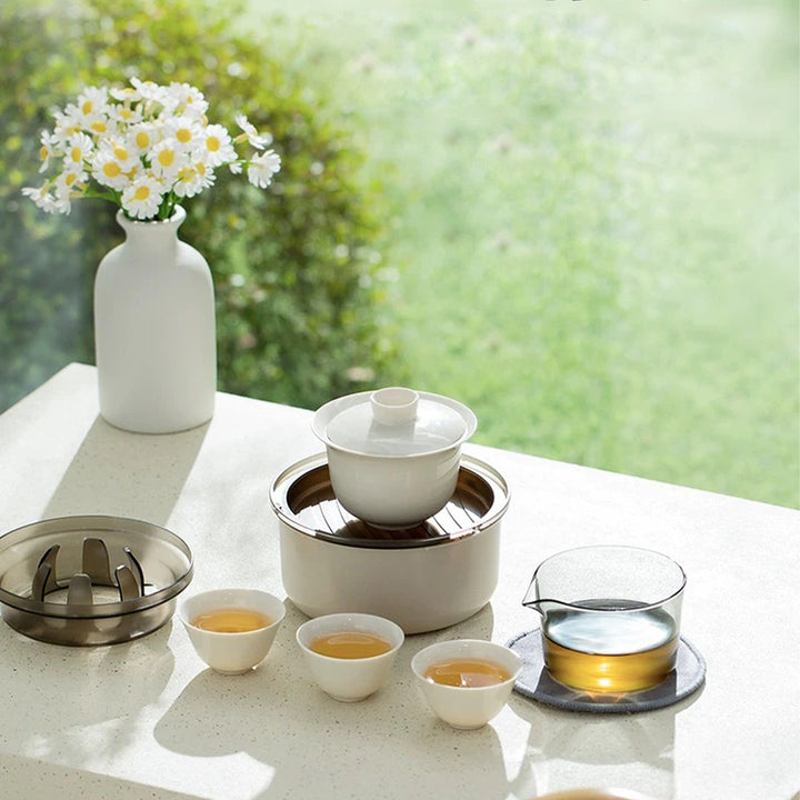 Solace is the kind of stillness you can hold in your hands. Compact yet complete, this travel Gaiwan tea set is crafted for those who seek serenity in motion.