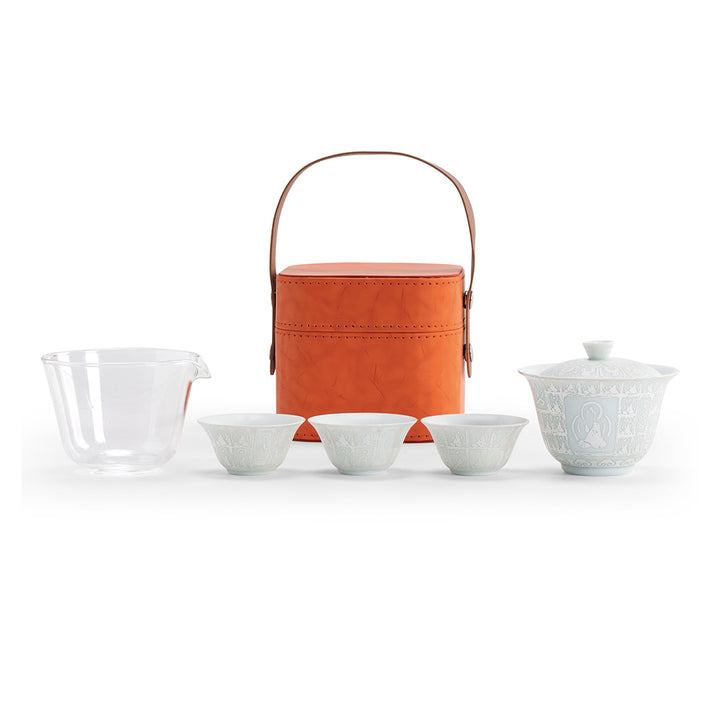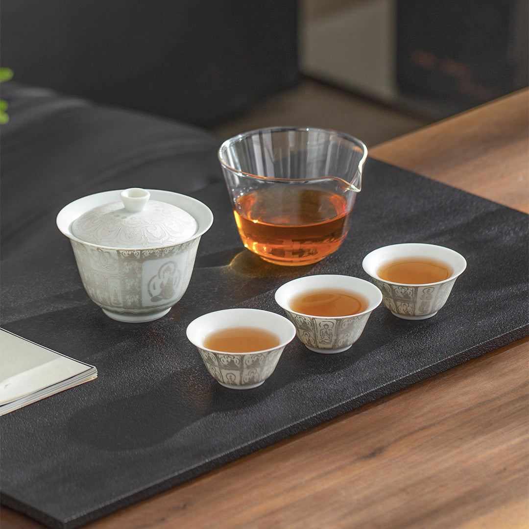 Thousand Buddhas - Silver glaze travel Gaiwan tea set