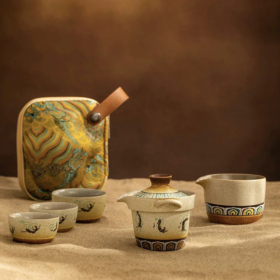 Inspired by the ancient murals and sacred beauty of the Mogao Grottoes in Dunhuang, this travel tea set is a tribute to spiritual journeys and timeless art.