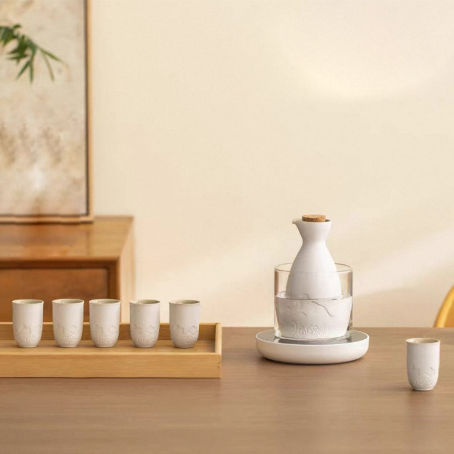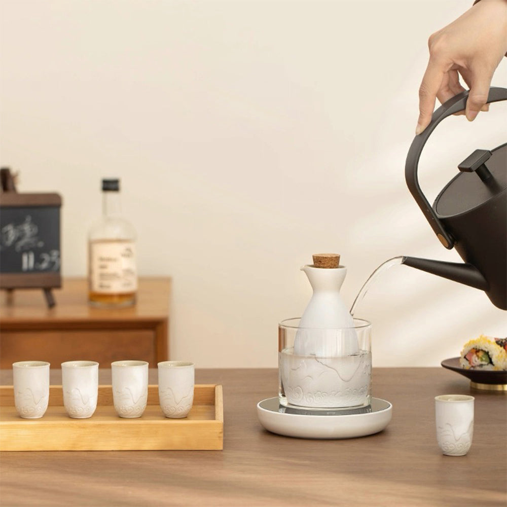 Inspired by the timeless harmony of nature, the Mountain and Sea Sake Set blends traditional Japanese aesthetics with modern elegance. Featuring a ceramic sake bottle, warming vessel, and matching cups, this set allows you to enjoy warm sake the authentic way—rich, smooth, and soul-soothing.